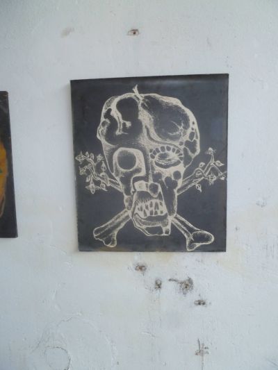 Fanmiddach hew ik mear as un uur rondlopen deur de ouwe drukkerij fan de firma Flach, dêr’t Gerrit Terpstra út Heech un poging deen het om un soart fan oversicht te maken fan un aventuurleke tòcht fan mear as 40 jaar. Ut begon al in de donkere kamer op de foto lito afdeling bij Flach. Dêr maakte de Gerrit as jonge in de loaze momenten de earste tekeningen dy’t al wat sien late fan wat bliëvend is in syn oevre: ‘ Het verstrijken van de tijd en de gevolgen daarvan zijn zichtbaar in vele werken die volgen. De ‘ levende dood ’, zoals de tekening inderdtijd genoemd is ook een teken van hoop en verwachting. Het bestaan zichtbaar in een onvoltooide schets’ ( sitaat út de fraaie tentoanstellingsgids “ Steanbestean ”– in skets 1970 -2012 ‘ ). Sien de bovenste foto!