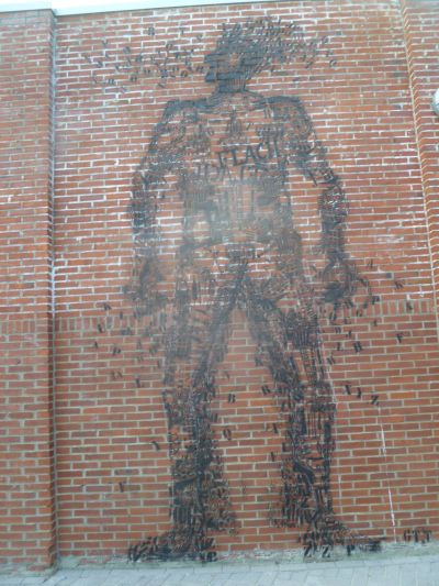 In de oulopen weken het Gerrit Terpstra op un muur fan ut binnenplak fan ut fabrykskompleks bovenstaande tekening anbrocht.