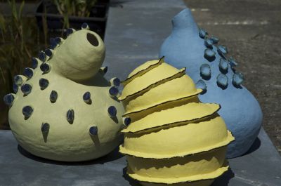 De keramiste Angèle Geuskens uit Menaldum is uitgenodigd om haar werk tijdens deze jubileum expositie tentoon te stellen. Ze is geboren in 1944 te Amersfoort en al vroeg in haar kinderjaren geïnteresseerd geraakt in kunst. Geuskens kreeg portret tekenles van Martin Brink in Amersfoort. Hierna heeft de kunstenares beeldhouwles genomen bij Heinrich Pohlenz in Kevelaar en daarna bij Marco Goldenbelt gedurende twee jaar. Vervolgens is Geuskens tussen 2008 tot 2010 een beeldhouwopleiding gaan volgens bij Herma Bovenkerk in Koudum. Tenslotte volgde zij in 2011 nog een cursus bij Riet Bakker in keramiek.