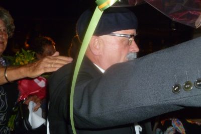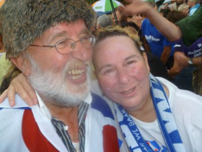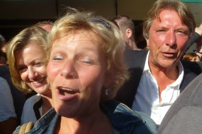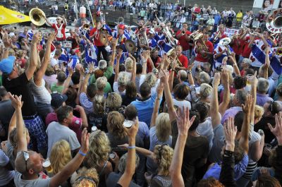Echte Blauhúster Dakkapel-fans brenge hun dank over an ut weareldberoemde dweilòrkest. Let ok even op de man met de cowboy hoëd, oans aller Yke S.