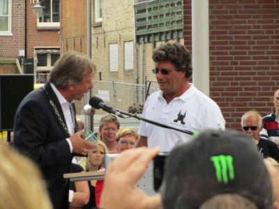 De bemanning wordt om 15.30 uur in de tuin van het stadhuis ontvangen. Burgemeester Hayo Apotheker zal daar schipper en bemanning huldigen. Publiek is hierbij uiteraard van harte welkom.