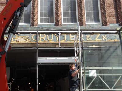 Gouden momentsje fanmiddach om un uur òf fier in ut hartsje fan de stad. Tegare met nòch un antal Snekers in de Nauwe Burgstraat staan en sien hoe’t Dútse boufakkers druk bezech binne met de ouwe gevel fan Piet de Gruyter tefoarskyn te toveren. De ferhalen over de foarmalege krúdenier, dy’t f’ral syn klanten onder de RK befòlking had binne talryk.