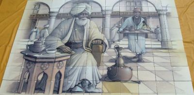 Hierbij zijn prachtige tegeltableau’s zonder scrupules verwerkt tot mozaïek en is tevens de gevel betimmerd door een stel rouwdouwers dat verantwoordelijk is geweest voor de beschadigingen in de naam ‘De Gruyter’ die op de foto te zien zijn (klik voor vergroting). In de volgende jaren hebben er verschillende huurders in het pand gezeten. In 1997 wilde de toenmalige huurder een nieuwe gevel en toen kwam de geschandaliseerde Jugendstilgevel te voorschijn die nu weer twee dagen te zien is geweest. De schade was al aangericht (in 1976 bij de Witteveen verbouwing). In 1997 (bij benadering) is het pand gemeentelijk monument geworden.