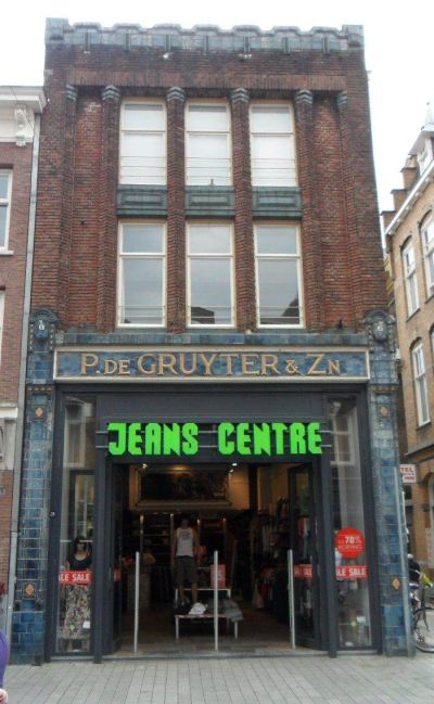 Toen de huidige huurder de bestaande pui aan wilde passen aan de Jack & Jones huisstijl, kwam het ‘geschonden aangezicht van De Gruyter’ weer te voorschijn en zijn Henk van der Veer en ondergetekende verantwoordelijk geweest via de respectievelijke sites en de social media voor flink wat reuring. Nog steeds terecht in mijn ogen, want het mooiste zou zijn dat een dergelijke gevel zou worden teruggebracht in zijn vroegere staat in plaats van het huidige ‘monument van middelmatigheid’ dat er nu staat. Dat verder de huurder een en ander buiten medeweten, laat staan goedvinden van de verhuurder om heeft gedaan, is op zijn zachtst gezegd niet netjes, maar het tekent wel de mentaliteit van veel van de grotere ketens in de binnensteden van de Nederlandse winkelcentra. En hier is het dus niet anders.