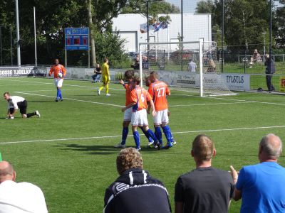 Fanmiddach al wear bij O.N.S. weest. Hew dêr un bitsje bizare wedstryd sien, met un miereneuker earste klas as skeidsrechter. De hear R.F. de Lima Schepens út Culemborg begreep der werklek gyn hout fan, teminsten hij foëlde de wedstryd absolút nyt an. Nadat O.N.S. 1 in de negende minút al met 1 - 0 foarkwam teugen Berkum, gaf hij Mark de Vries ( jaja dy fan SC Cambuur ) un gele kaart wegens praten. De Vries nam na ut doelpunt fan O.N.S. de bal in hannen en gaf dy fòlgens de skeids nyt te snel teruch. De oud-prof sei na ut fertoanen fan de gele kaart dat hij de aksy fan de skeids nyt begreep mar ' daar praten we na de wedstrijd nog wel even over scheids '. De leidsman fatte dy opmerking op as un bedreiging en traktearde de nieuwbakken O.N.S.'er op nòch un gele kaart, dus road! Nou ja sêch! De wedstryd eindigde foar de Oranjehemden in un 2 - 2 stand. Ut foetbalseizoën is wear los!