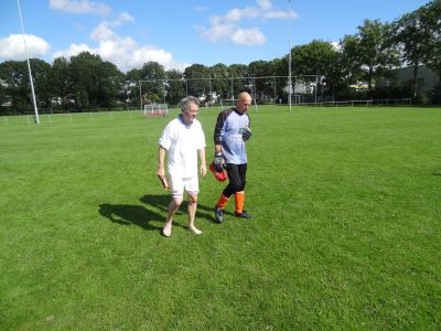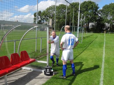 Ik strompel in de rust fan feld dry naar de boks, tegare met keeper Appie fan VVI, dy beslút ok nyt teruch te kearen na de Pickwick Tee. Appie het kneusde ribben. Doët ok behoarlek AUAU!