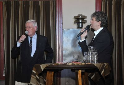 Fandaach like onferwacht op ut denkbeeldege poadium met Hans Wiegel in blauwe blazer en lichte broek. De man dy’t de nieuwe gemeente SWF as koekoeksjong kwalifisearde, mar der fanmiddach amper wat over sei. Un polityk boefke fan ut súverste water, dy’t dus un groatneester is in ut niks sêgen. Jacques Monasch hoeft um nyt te skamen dat hij amper fat kreech op ut fenomeen Wiegel. Dizze man het un charisma fan hier tòt Tòp & Twel en ferder, hier krije je amper fat op.