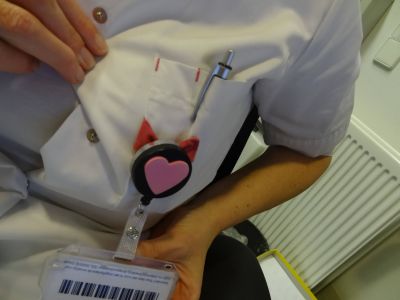 Wel is ut aardech om te fertellen dat de afdeling Cardiologie in Sneek met syn tiid met gaat. Je merke dat an kleine dingen. In de wachtkamer staan koffy en tee in felkleurde trendy termoskannen klaar foar de wachtenden. Fut met ut wachtkamergefoël! Nòch su’n detail dat in ut ooch springt op de afedeling Cardiologie: de metwerkers hewwe un button in de fòrm fan un hartsje, fyn ik grappech.