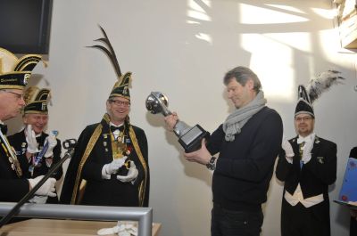 Ondertussen gaat ut nieuws wel gewoan deur. Gelukkech was fotograaf Jan Douwe su fit as un hoentje en hij mailde mij un antal moaie foto's dy't hij fan de Karnavalsfamily maakte. Ik hew begrepen dat Stichting de Sneker Pan de Aggemabokaal in ontfangst nommen het. Moai gebaar fan de Oeletoeters richting de Stichting! Burgemeester Hayo Apotheker overhandegde fanmòrren de stadssleutels an Prins Boudwijn de Earste. Foar de ferdere ferslachgeving ferwies ik jum naar de site fan de Oeletoeters!