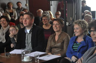 Stella van Gent is nyt allienech presentatrise dizze middach mar ok fertolker fan ut stuk dat anders deur oud-burgemeester Siebolt Hartkamp foarleze wúde sú. Sykte ferhindert hem om self syn kollum út 2009, un oade over Café Vellinga foar te lezen. Van Gent doët ut nou met ferve! Ut is wel dúdelek dat we fanmiddach nyt an de bar staan mar an de tooch en Nico is gyn barkeeper mar un kastelein su laat Hartkamp foarleze! Moai ok dat hij histoarys besef het: dit is een café met Sterren! Wêrbij’t refereart wurdt an de joadse útbater Pino!