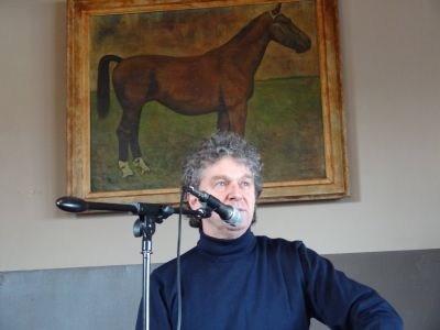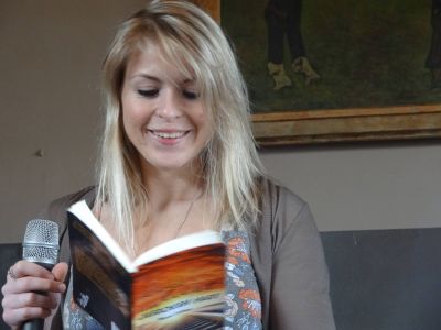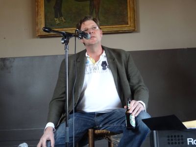 Ik mach na Ilse Hoekstra de kleine Bühne op en lees o.a. dry fersen foar út de syklus over Joadse Snekers. Ik fyn ut wel passen op dit plak dêr’t oait de family Pino werkte en woande. Ok lees ik fertaalde fersen fan Joop Slagter foar.