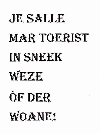 Momenteel is Joke hot in de kulturele katernen fan de media om nòch mar te swijgen over de giga groate bill-boards an de kant fan de de dyk. Ik gun ut Joke( en har family ! ) fan harte, ut is ok nòchal wat dat un profetes in eigen stad eard wurdt! Anekdoate