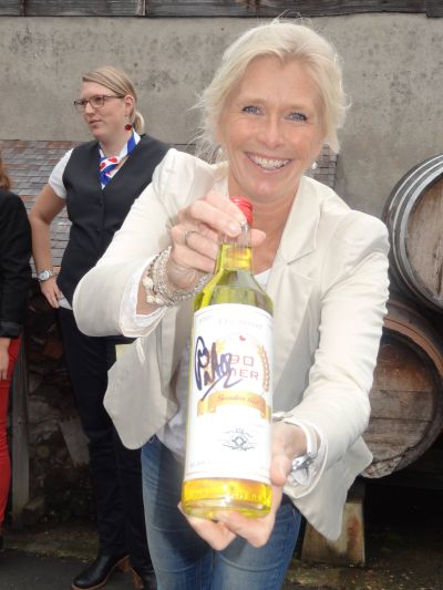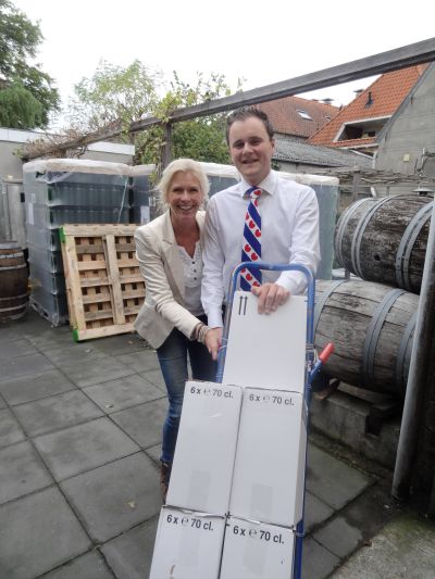 Ook galerie eigenaren Peter en Redmer Bax glunderen. ‘Zo’n volle galerie is een prachtige beloning voor de samenwerking met Weduwe Joustra. Bij ieder werk hoort een verhaal en dat vertellen wij er graag aan alle bezoekers erbij, uiteraard onder het genot van een glaasje Beerenburg.’ Tijdens de opening werd door Peter Bax het allerlaatste werk in ontvangst genomen, een prachtig plakboek vol historie van de Weduwe. Foto’s, kranten, knipsel verzamelt door de 74-jarige Sneker Roel Osinga. Glimlachend vertelt hij dat hij het niet meer mag drinken, maar het zo’n mooi bedrijf vindt. Ondertussen springt de 6e generaties op dé Weduwe Joustra fiets, de hoofdprijs voor het winnend werk.