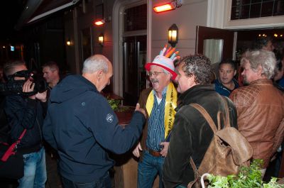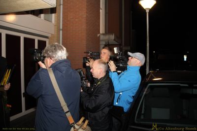 Jeuminikkus, niks in de gaten mar dêr stonnen mear as 100 frynden, familyleden, Sneekologen en allemaal mênsen met un gouden hart. De matty’s út de Sneker paparazziweareld heftech an ut foto-skiëten, kamera’s fan Friesland Actueel en GPTV draaiden. Radio Markant met de mikrofoan in de anslach.