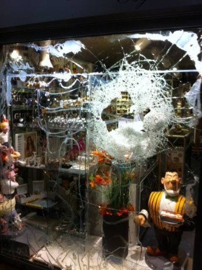 Kaansloase gangsters hewwe aflopen nacht letterlek hun slach slagen in de winkel fan Greetje, ‘ Medaillon Bijous ’ in de Galigastraat. De swaar panserde glazen bleken nyt bestaan teugen dom geweld en ferfòlgens wurdde ok de fitrine dy’t achter ut etalaazjerút ston fernield. Foar dúzenden euro’s materieële ska om over de immateriële ellende nòch mar te swijgen. Sterkte Greetje!