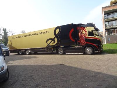 Sukrekt parkearde de truck fan ut Noord Nederlands Orkest achterhús. Fanavend un optreden fan ut NNO met o.a. Janneke Brakels. ABBA! Sal der bij weze, hew absolút gyn hinder fan su'n frachtwagen, dy rydt ut terrein fan Teater Sneek op en je merke der amper wat fan! Moai dat ut su kan! En wat fantastys dat Janneke Brakels, frou út de eigen regio hier fanavend in Sneek op ut poadium staan mach!