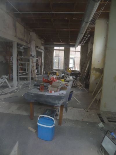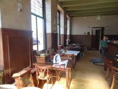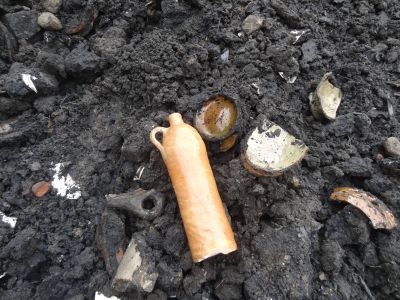 Suwel búten as binnen ut pand binne werklui druk bezech om ut horeka etablissement naast Theater Sneek nòch foar de somer foarmekaar te krijen. Bij de rioaleringswerksaamheden kwamen der allemaal ouwe pòtskerven en krúken naar boven. Gyn flau benul òf ut ok fan argelogise waarde is, mar ik fon ut seker un foto weard. Uteraard ok even naar binnen glúre bij de buren om un interieurfoto te maken…