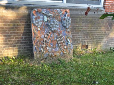 “ Bij de uitbreiding in 1958 van de christelijke kweekschool aan de Parallelweg werden door de kunstenaar Anno Smith uit Eelderwolde op de zij- en voorgevel van het gebouw verschillende muurdecoraties aangebracht. Bij de heropening van de school vertelde Smith dat het keramiek op de zijgevel een uit het christelijk monogram opspuitende fontein voorstelt.