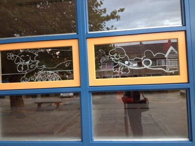 De bekende Liwwarder kunstenaar Eric Hengst is momenteel druk bezech met ut anbrengen fan raamdekorasy's op de Johannes Post Skoal in de Noorderhoek. Toen ik gistermiddach deur myn ouwe buurtsje kuierde was Hengst druk bezech met ut tekenen fan de illústrasy's. De dekorasy's geve de 4 seizoënen wear in grappege figuurkes, dy't de basisskoallearlingen fan de Johannes Post Skoal seker anspreke salle.
