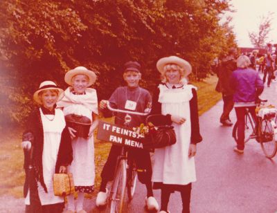 Jantine Nauta, as skoalmeiske in de Hommerts, hier links. Foto nommen tidens un optocht op Befrijdingsdach