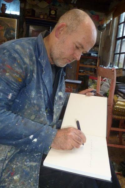 “ Yn novimber 2000 iepene Bram by ús in eksposisy yn’e galery. Hy die dat op in hiele autentike Bram Vermeulen wize. In prachtich gedicht oer de keunst. Nei syn iepening sei ik tsjin Bram dat ik ûnder de yndruk wie en dat dizze taspraak bysûnder wie. Beskiedn at er wie sei Bram dat hij it fers wol wer ris brûke koe foar in publikaasje. Ik hoegde myn hielendal net beswierre te fielen. Doe doarde ik ek te sizzen dat dy publikaasje dan mar in boek wurde moatst mei Bram syn skildere wurken. Ad rem as altyd witst Bram meiien de titel al: Bram de Schilder! ”