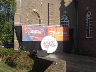 Na de opening een week later hevve we as vrijwillegers nog un leuke avond had, tekening op de achtergrond met de man in het wit ervoor (fotograaf) hev ik toen ok maakt.