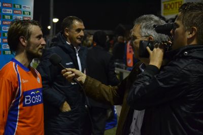 Later op de avend nòch interviews deen met ferkillende speulers en de beide treners. Hearlek en foar mij f'ral ontspannend om te doën! Foar de beelden ferwies ik graach naar www.frieslandactueel. Der waren gisteravend su'n 1000 besoekers en un soad pers. Foto's binne fan Rob Bosma en Jeroen van der Kallen.