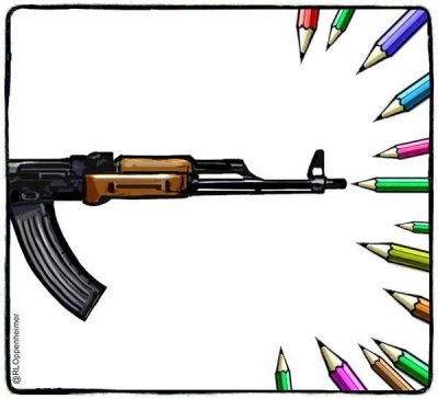 Deze terroristische acties van een drietal criminelen raken de ziel van onze menselijke beschaving. Daarom verdienen deze monsters de allerhoogste straf. Kennelijk zijn deze laffe moordenaars, die onder een luide oproep van ‘God is groot’ in het wilde weg slachtoffers maakten, niet op de hoogte van islamitische waarden, zoals menselijkheid en barmhartigheid. Nog nooit is het een cartoonist gelukt om mij op de kast te jagen door symbolen van de islam grof af te beelden of aan te pakken.