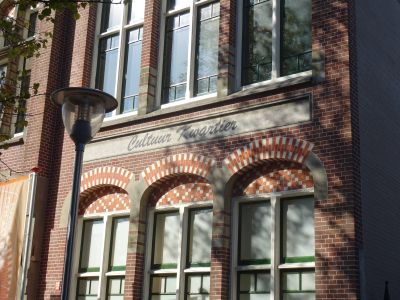 Fiel mij fanmiddach foar ut earst op an de gevel fan 'myn' Eben Haëzerskoal. Dêr't froeger de onbegrypleke woarden Eben Haëzer pronkten staat nou te lezen dat ut Cultureel Kwartier Atrium Kunstencentrum hyt. Ik fyn ut prachtech!