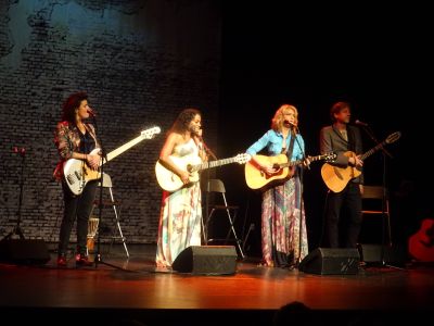 Het decor, een doek met daarop een ruïne-achtig verweerd muurmotief waarop wisselende beeld, o.a. een Nederlandse vlag, geprojecteerd werd dragen ook bij aan de intieme sfeer van het programma. Nergens wordt het schreeuwerig en juist door die ingetogenheid komt wat het viertal over wil brengen binnen bij het publiek. Er is heel veel herkenning voor het oudere publiek , waar was de jeugd gisteravond? Dat een groot gedeelte van de Sneker gospelgroep ( ooit door mij als ‘de witte negers van Sneek’ getypeerd ) Signalen met hun muzikale leider Wilco Kloosterman aanwezig was, moet vooral Izaline goed gedaan hebben. Zij trad al eens op met de Signalen.