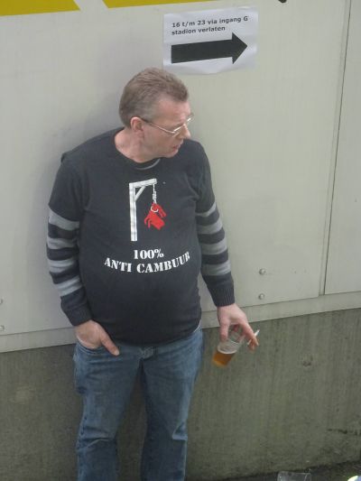 Let op de SC Heerenveen suppòrter, links! Bitsje domme aksy richting SC Cambuur eensellegen...