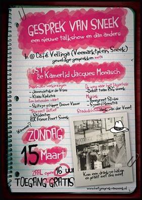 Der binne alle dagen dingen & gebeurtenissen wêr't ik gelukkech fan wurde kan. Fandaach was wear su'n dach. Fanmòrren earst druk weest met de foarbereidingen foar ut Groate Sneker Befrijdingskonsert fan 15 april anstaande. Ik hew der un goëd gefoël over! De kaartferkoop ferloopt foarspoedech!