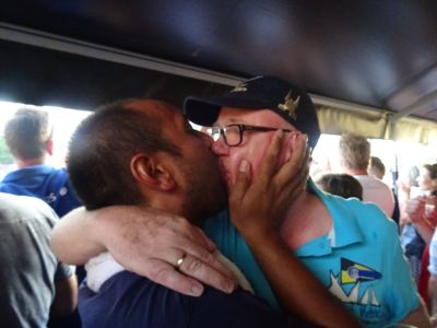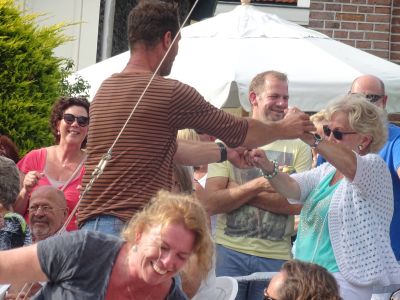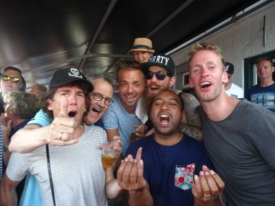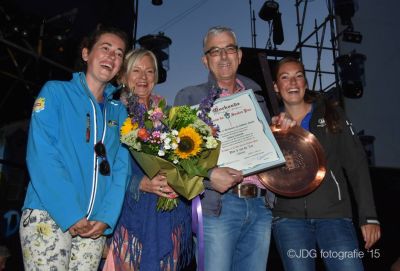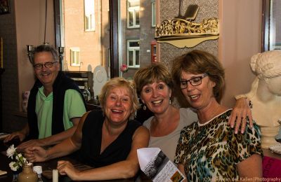 Dit jaar helemaal foar Sonja, dy’t na seuven maanden Down Under wear boven op de tafel ston. Ut fotomoment met de Amsterdammers en Olof van der Meulen dy’t alle kearen wear met ‘ Ha die Ron Zwerver ’ de noadege hugs krijt. Fokke Dam met syn Sneekweeksoan Flip. Ut hoart der allemaal bij.