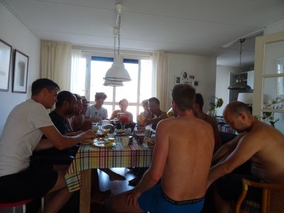 Een fan de moaiste su nyt hoogtepunten in de Sneekweek is ut sundachmòrrenontbijt. We sitte dan met un megagroate groep an tafel en ete súkerbroad ( spesiaal foar de Amsterdamse frynden ! ) en lekker broadsjes. Ut ene ferhaal jaagt ut andere ferhaal over wat de avend en nacht dêrfoar allemaal gebeurd is.