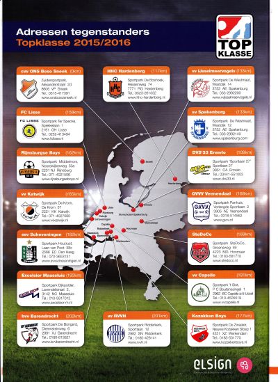 De nieuwe presentasygids fan myn klup, O.N.S. Boso Sneek, fiel gister op'e kokòsmat. Siët der wear gelikt út! In de gids ok de afstannen dy't ut earste XI-tal dit seizoën aflêge mut. Nyt gering, echte kilometerfreters!