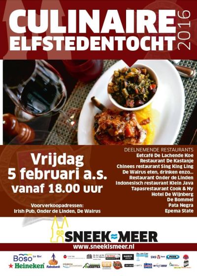 Culinaire Elfstedentocht in Sneek op vrijdagavond 5 februari 2016
