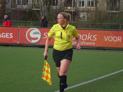 Grensrechter was vanmiddag mevrouw M. Deuring, waar zij in eerste instantie als vierde official op papier stond. Doordat er een van de grensrechters vast kwam te zitten op de Afsluitdijk ( defecte brug ) moest Deuring aan de bak. Ze deed dit foutloos! Ook de supporters van Scheveningen beleefden een vervelende middag, ook zij stonden vast op dé toegangsweg naar Friesland.