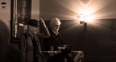 Fotograaf Jeroen van der Kallen as gisteravend anwezech met kamera en maakte un únike opname fan de foardracht fan de Friese dichter Piter Yedema. Hoar en húver fynproevers. Su moai!