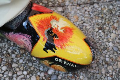 Binnenkòrt leze jum over dizze geweldege levensartyst! Allienech al dat je met sukke klompen ( eigenhandech beskilderd ) in ut leven staan is foar mij GOUDEN!