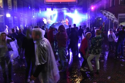 Der waren allemaal freeslek aardege lui dy’t we dêr op ut Lemster straan teugen kwamen. Feul Snekers ok en un heel soad moaie frouwen su’t Sjaky S. ( 50-pluspraat!) al an ut begin fan de avend opmerkte. “We hewwe gewoan mazzel je, dat wij bij dy 20% mannen behoaren”, sei de Sneker skilder dy’t ok min òf te mear ferplicht met moest. Sjaky moest bovendien ok nòch us twee kear un uur ( heen en wear ) fytse om bij Borsato op besoek te kommen. Hij sliep ergens op un kemping.