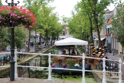 Wat mij ferder in dizze stad opfiel dat Delft mear met syn grachten doët as Sneek. Op ferskillende plakken lêge dêr klein potons dêr't de plaatseleke horeka har gasten fan un natje & droogje foarsiët. Miskyn un aardech idee foar ut Groatsaan?!