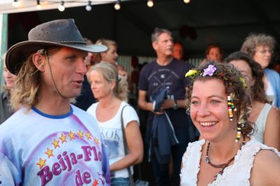 En toen ontston der sumar un poëzy-battle tussen Bobby Reen en mij. Ik fon ut werklek hearlek om te doën, su út de losse haan fersen foarleze fanaf A4-tjes dy’t letterlek om mij heen flogen. Bobby dy’t un fers foarlas over ‘Henk út de stad dy’t der nyt mear was’ en ik un fers ‘foar Bobby, foar de overlevenden’. Gouden om in je eigen Snekers fersen foar te lezen in ut holst fan de nacht!