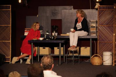 Dizze hearlike komeedzje mei prachtige dialogen wurdt op it skerpst fan de snede útfochten troch twa comédiennes pur sang: Anneke Hondema en Joke Tromp. Twa aktrises dy’t harren spoaren yn Fryslân fertsjinne hawwe op alle poadia, sawol by ad hoc produksjes as by de ferieningen yn de top fan it Fryske amateurcircuit en iepenloft foarstellingen. De rezjy is yn hanen fan Dirk de Vries.