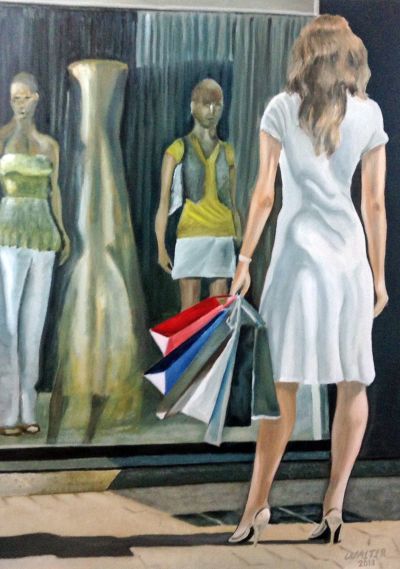 Nieuwkomer Walter de Graaf uit Joure heeft altijd al getekend. In 1983 begon hij met een cursus tekenen en schilderen in de Lantaarn te Joure en een cursus modeltekenen in de Cirkel te Heerenveen. Zijn voorkeur gaat uit naar dagelijkse dingen of een detail van een geheel, sterk uitvergroot. Meestal maakt hij een kleine serie van een onderwerp. Dit kan van alles zijn: van urinoir tot Doutzen Kroes. Zijn werken in deze expositie geven een hedendaags tijdsbeeld van winkelende vrouwen en etalages. Deze momentopnames zijn van onder bekende winkelplekken in Sneek en Leeuwarden. Zijn laatste exposities in 2016 waren onder andere in het Museum Joure en het Kultuerhus in Oudehaske.