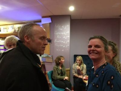 Sneek- Barry Diphoorn van Culinair Podium Lewinski aan de Waterhoenstraat maakt haar droom waar. Dat doet ze door muzikale, creatieve en culturele avonden te organiseren in de oude sigarenfabriek Cuba. Gisteravond was er weer zo’n bijzondere voorstelling met de zussen Elske en Femke de Walle en het was er bommetjevol : ‘Het is hier nog nooit zo druk geweest, sinds de opening, ik heb zelfs mensen moeten teleurstellen’, aldus de immer aimabele eigenaresse van de grootste huiskamer in Sneek.