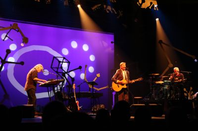 Sneek- Binnen 24 uur op exact dezelfde stoel, dezelfde rij in Theater Sneek een overdonderend concert van herkenning meemaken. Was het vrijdagavond Stef Bos die mij meenam op een poëtische terugreis in de tijd, gisteravond ging ik aan de hand van de Nits met Henk Hofstede, Rob Kloet en Tobert Jan Stips back in time. Gelukkig was ik niet de enige die meeging op een verrassende sentimantel journey. De Tuöttenzaal van Theater Sneek was goed bezet met veel van mijn generatiegenoten die ook allemaal genoten van wat de Nits brachten, een theatrale voorstelling waarin heel veel gebeurde.