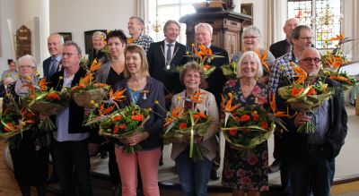 Sneek -De jaarlijkse Lintjesregen heeft in Súdwest-Fryslân geleid tot vijftien Koninklijke onderscheidingen. Burgemeester drs. Hayo Apotheker vanochtend in de Martinikerk in Sneek de onderscheidingen uit aan veertien inwoners. De vijftiende gedecoreerde krijgt de onderscheiding op een later moment. Hij was verhinderd naar Sneek te komen.