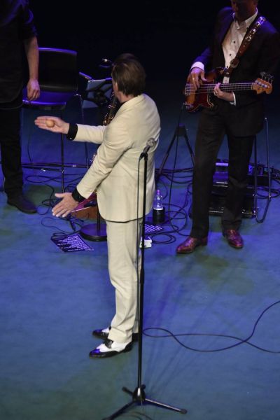 Dat zitten is absoluut geen straf, wat heet. Een klassiek De Dijknummer als ‘Ik kan het niet alleen’, klinkt niet alleen anders op het podium van een theater dan in een feesttent, het is ook anders! Alleen al de enorme theatrale performance ( Joe Cocker, maar dan op z’n Amsterdams ?!) van Van der Lubbe is bijna tastbaar en intiem op een theaterpodium. Prachtig hoe hij ‘Wat een vrouw’ zingt, om niet te zeggen ‘acteert.