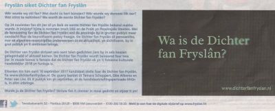 En over dat ‘dichterskap fan Fryslaan’? Hou ut Friesch Dagblad fan mòrren goëd in de gaten!