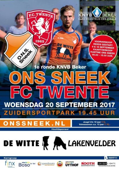 Volgende week spelen de Snekers tegen Jong FC Twente, die wedstrijd wordt in Hengelo gespeeld. Waar de bekerwedstrijd tegen de grote broers van Jong FC Twente wordt gespeeld is nog onbekend. Na dinsdag weten we ongetwijfeld meer.